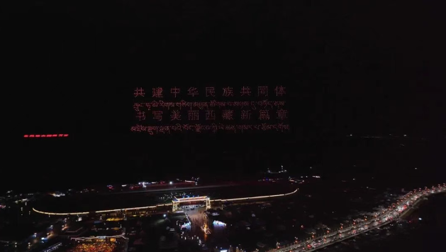 在那曲市恰青赛马节期间,青海省玉树州带来独具特色的专场文艺演出,色尼区文旅局主办的2000余架无人机表演同步登场,为观众带来了别具一格的视听体验。